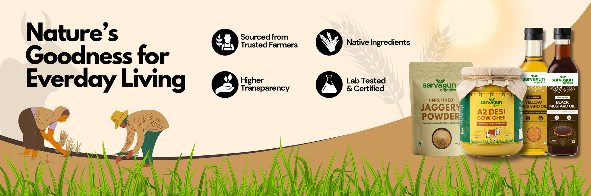 Sarvagun Organics Yellow Mustard Oil is a premium-quality, wood-pressed oil extracted from farm-f...